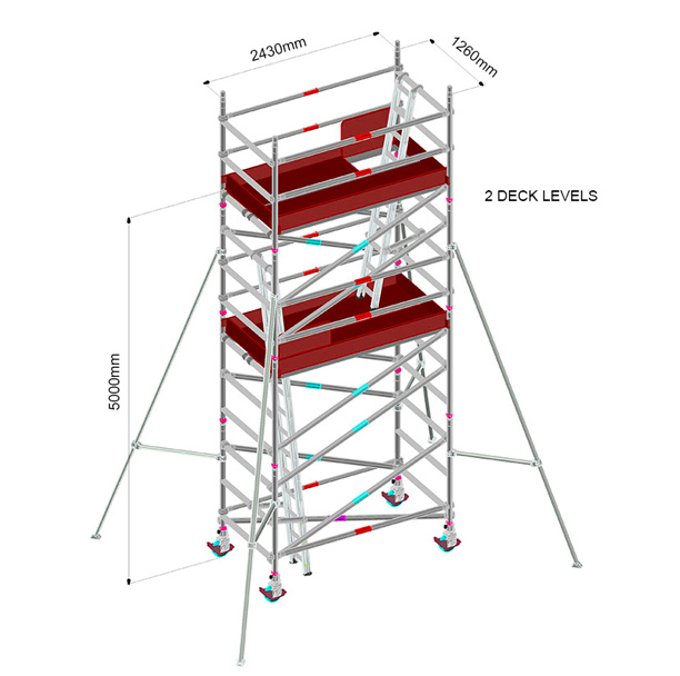 Aluminum tower used for maintenance and construction for residential, civil and construction for self-assembly on site. Providing a safe work platform for tools, materials and the user.